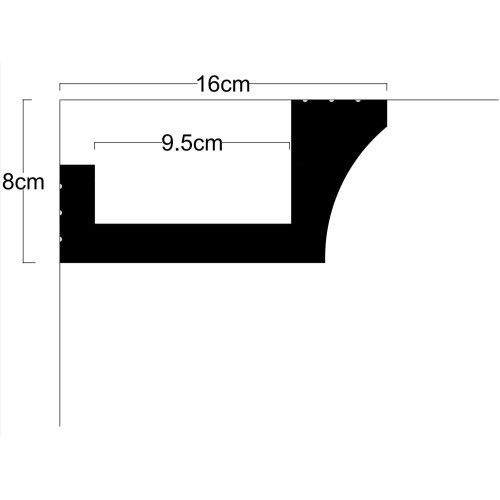 Профилът за корниз модел LD-16, създава изключителен и иновативен ефект в интериора, светещ с монтажни отвори за луни. Произведен по собствената технология SolidXPS™, профилът позволява реализирането на по-големи и по-дълбоки декоративни форми, които са трудни и трудоемки за изпълнение с гипсокартон. Това го прави ефективна и естетична алтернатива за проекти, при които се търси внушителен резултат без сложни конструкции.Произведен е от XPS ( фибран) или така наречения екструдиран пенополистирол. При втвърдяването на XPS се получава хомогенна пяна с микроскопични затворени въздушни джобчета, което го прави много лек, здрав и същевременно водоустойчив и много удобен за монтаж. За монтажа има няколко изисквания: залепянето за стената да се прави с монтажно лепило( без разтворител); шпаклова се с гипсово лепило на фугата между два профила( около 5 см.); боядисването е задължително - като се използва боя на водна основа или латекс. Профилът за скрито осветление се предлага на парче от 2м. , цената в сайта е за 2м. Профилът е подходящ за осветление във вашия хол, трапезария, спалня, хотел и ресторант.