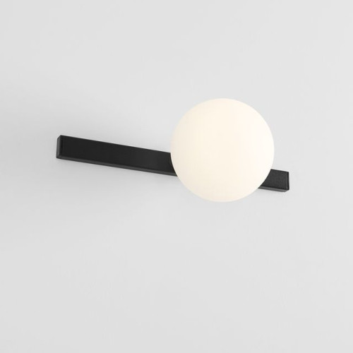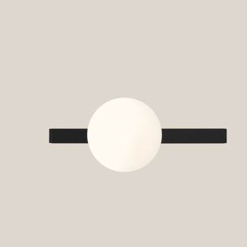 Модерен аплик с оригинален дизайн от серията Garda, изработен от черен мат цвят метална основа и опал стъклена чашка в сферична форма. Стилно решение за комфортното и качествено осветление на вашия хол, трапезария, спалня, хотел и заведение.