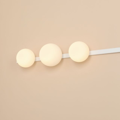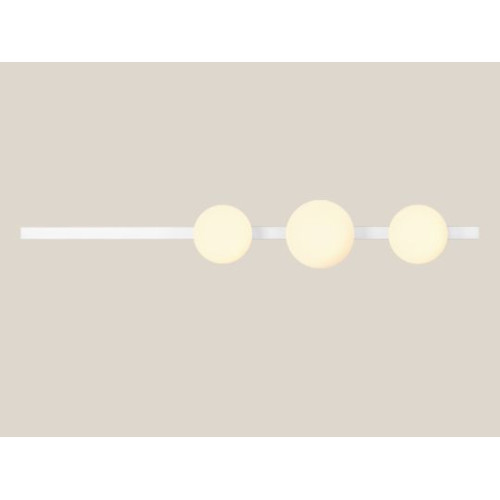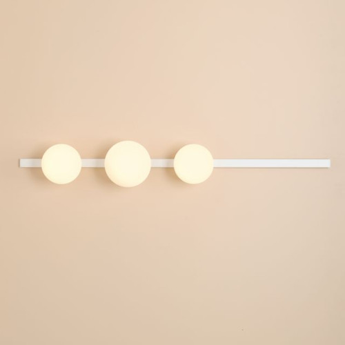 Модерен аплик с оригинален дизайн от серията Garda, изработен от бял мат цвят метална основа и три опал стъклени чашки в сферична форма. Стилно решение за комфортното и качествено осветление на вашия хол, трапезария, спалня, хотел и заведение.