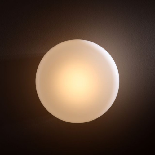 Стилен аплик от серията Ball, изработен от цвят шам - фъстък кръгла метална основа и матово бял цвят..