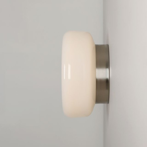 Модерен аплик на дизайнера Mikołaja Nicera от серията Bonbon, изработен от цвят никел кръгла метална основа и чашка от бяло опалово стъкло на цокъл GX53. Стилна лампа, подходяща за оригиналното и комфортно осветление на вашия хол, трапезария, спалня, хотел и ресторант.