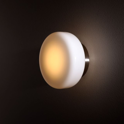 Модерен аплик на дизайнера Mikołaja Nicera от серията Bonbon, изработен от цвят никел кръгла метална основа и чашка от бяло опалово стъкло на цокъл GX53. Стилна лампа, подходяща за оригиналното и комфортно осветление на вашия хол, трапезария, спалня, хотел и ресторант.
