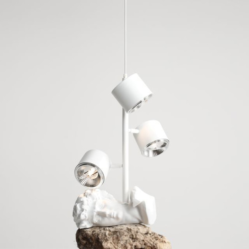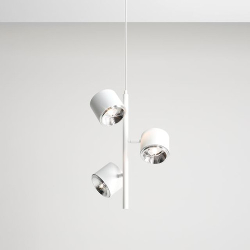Съвременен пендел със стилен дизайн от серията Bot, изработен от бял цвят метална основа с висящо вертикално рамо и три цилиндрична форма подвижни метални глави на цокъл GU10. Качествена лампа, подходяща за функционалното осветление на вашия хол, трапезария, спалня, офис, хотел и заведение.