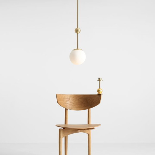 Класически пендел в модерен стил от серията Mae, изработен от кръгла основа и месингово рамо със сферичен декоративен детайл и бяла стъклена чашка на цокъл Е27. Оригинално решение за интериорното осветление на вашия хол, трапезария, спалня, хотел и заведение.