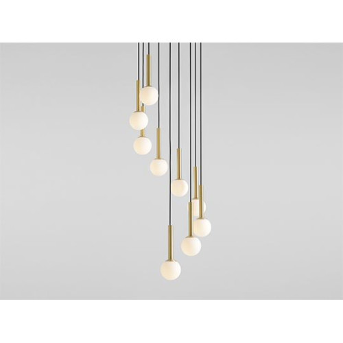 Стилен пендел от серията Riu, изработен от черна метална основа и цилиндрични метални елементи в цвят месинг с матово бял цвят сферични стъклени чашки на цокъл G9. Модерно предложение за комфортно осветление на вашия хол, трапезария, спалня, хотел и заведение.