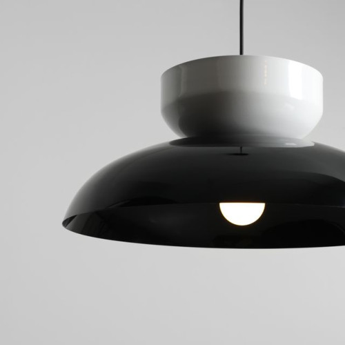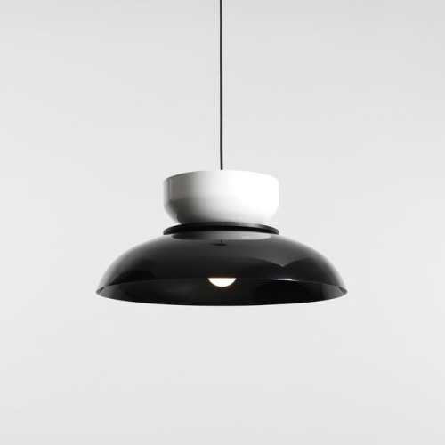 Оригинален пендел с атрактивен дизайн от серията Aldo, изработен от метална основа и две метални чашки в бял и черен цвят, свързани чрез дървен диск. Модерно решение за интериорното осветление на вашия хол, трапезария, спалня, хотел и заведение.