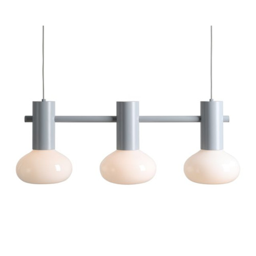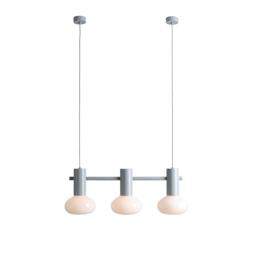 Стилен пендел с минималистичен дизайн от серията Flo, изработен от сив цвят метално тяло и три опал стъклени чашки на цокъл Е14. Оригинално решение за комфортното и модерно осветление на вашия хол, трапезария, спалня, хотел и заведение.