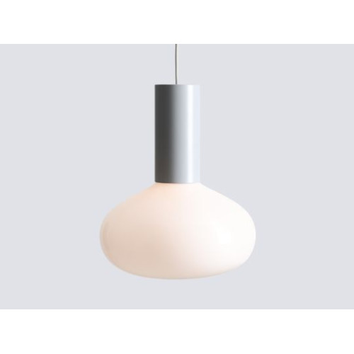 Стилен лампион с минималистичен дизайн от серията Flo, изработен от сив цвят метално тяло и опал стъ..
