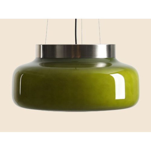 Модерен пендел на дизайнера Mikołaja Nicera от серията Bonbon, изработен от цвят никел метална основа и чашка от зелено опалово стъкло на цокъл GX53. Стилна лампа, подходяща за оригиналното и комфортно осветление на вашия хол, трапезария, спалня, хотел и ресторант.