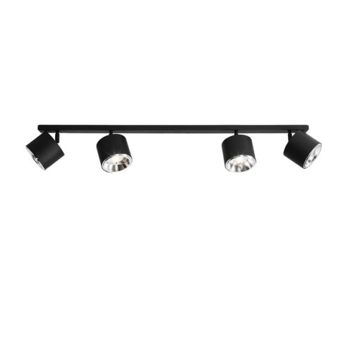 Съвременен спот със стилен дизайн от серията Bot, изработен от черен цвят правоъгълна метална основа и четири цилиндрична форма подвижни метални глави на цокъл GU10. Качествена лампа, подходяща за функционалното осветление на вашия хол, трапезария, спалня, коридор, офис, хотел и заведение.