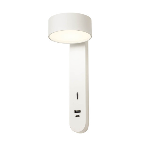 Оригинален светодиоден аплик с функционален дизайн от серията Sades, изработен от матово бял цвят елипсовидна метална основа и подвижна цилиндрична led метална глава със сатен бял акрилен разсейвател и ъгъл на разсейване на светлината от 110° с вграден 6W 3000K LED. Модерна лампа с USB изход за зареждане тип A + C, 2.1A и ключ: ON/OFF, подходяща за интериорното осветление на вашата спалня, кабинет, офис или хотел.