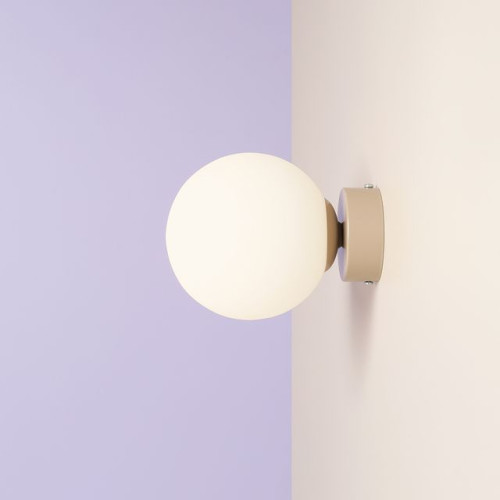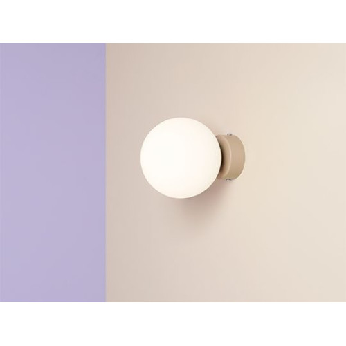 Стилен аплик от серията Ball, изработен от бежов цвят кръгла метална основа и матово бял цвят стъкле..