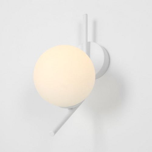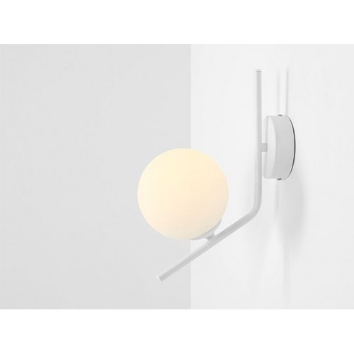 Оригинален аплик с модерен дизайн от серията Gallia, изработен от бял цвят метална основа и рамо с матово бял цвят сферична стъклена чашка на цокъл Е14. Стилно решение за комфортно осветление на вашия хол, трапезария, спалня, хотел и заведение.