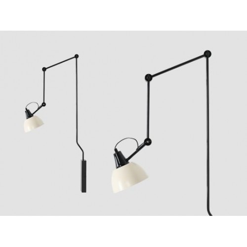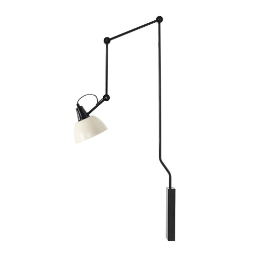 Функционален аплик в индустриален стил от серията Aida, изработен от черен цвят метална основа с разгъващи се рамена и метална чашка в кремав цвят отвън и бял във вътрешността на цокъл Е27. Модерно решение за комфортното и стилно осветление на вашия хол, спалня, офис, хотел и заведение.