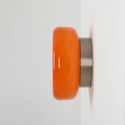 Модерен аплик на дизайнера Mikołaja Nicera от серията Bonbon, изработен от цвят никел кръгла метална основа и чашка от оранжево опалово стъкло на цокъл GX53. Стилна лампа, подходяща за оригиналното и комфортно осветление на вашия хол, трапезария, спалня, хотел и ресторант.