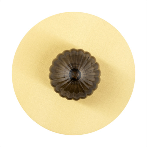 Стилен аплик от серията Paloma, изработен от месингово тяло във формата на диск и сферична форма чашка от опушено набраздено стъкло. Изискано предложение за качественото и комфортно осветление на вашия хол, трапезария, спалня, коридор, хотел и ресторант.