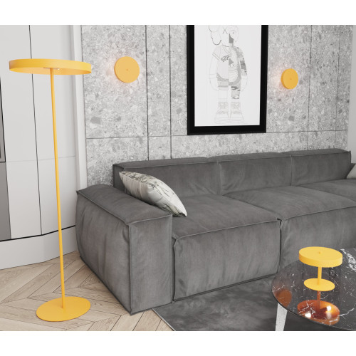 Оригинален аплик в модерен стил от серията Nemo, изработен от оранжев цвят кръгла метална основа с рамо и кръгъл плосък метален разсейвател с индиректно разсейване на светлината на цокъл G9. Атрактивна декоративна лампа, подходяща за оригиналното осветление във вашия хол, трапезария, спалня, коридор, хотел или заведение.