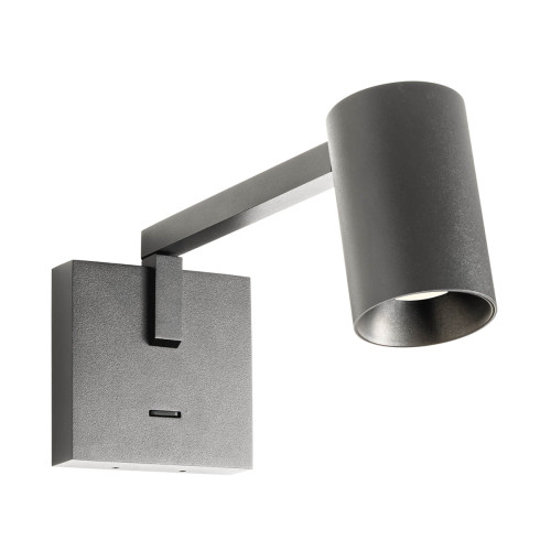 Модерен аплик със стилен дизайн от серията Rolf, изработен от матово черен цвят квадратна метална основа с рамо и цилиндрична форма подвижна алуминиева чашка на цокъл GU10. Оригинално предложение за интериорното осветление на вашия дом, офис, заведение или хотел.