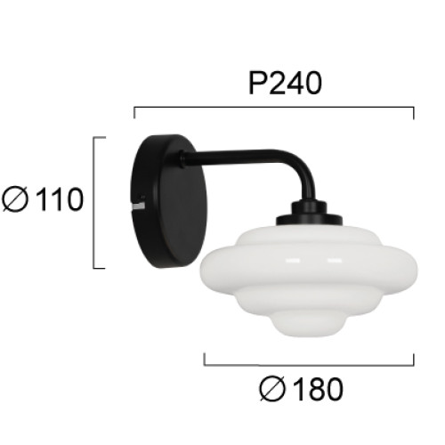 Размери: Диаметър: 180мм, Диаметър на основата: 110мм, Разстояние от стената: 240мм