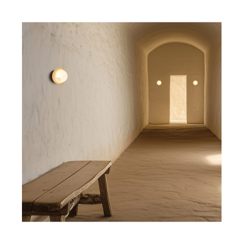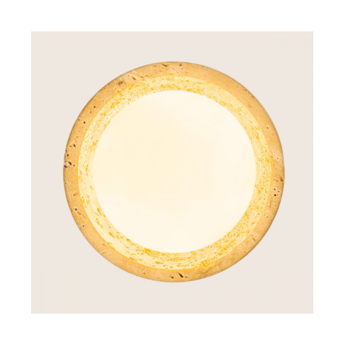Модерен аплик с атрактивен дизайн, изработен от кафяв цвят кръгла дървена основа с полусферична шапка от естествен камък и опал стъклен разсейвател. Дизайнерско решение за стилното и комфортно осветление на вашия хол, трапезария, спалня, коридор, хотел и заведение.