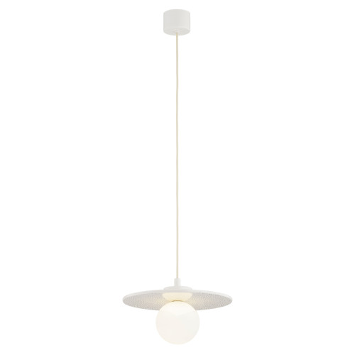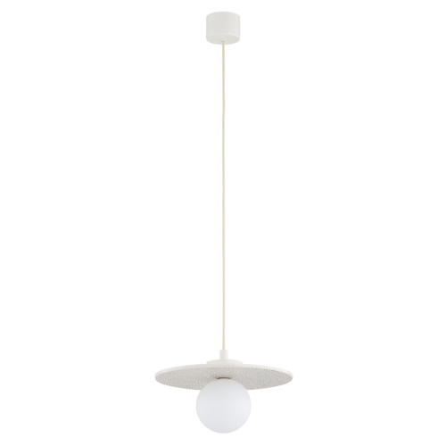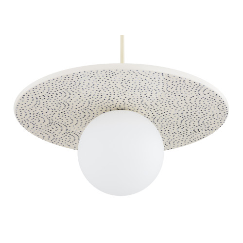 Оригинален пендел със стилен дизайн от серията Boll, изработен от метална основа и красива керамична шапка в кремав цвят с ръчно декорирани тъмно сини детайли и опал мат сферичен стъклен разсейвател. Атрактивно решение за уютното и комфортно осветление на вашия хол, трапезария, спалня, хотел и заведение.
