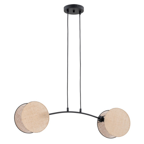 Оригинален пендел със стилен дизайн от серията Motif, изработен от черен цвят метална основа с тънко извито рамо и две двойки декоративни текстилни диска в бежов цвят, разположени около източниците на светлина. Модерно решение за интериорното осветление във вашия хол, трапезария, спалня, хотел и заведение.
