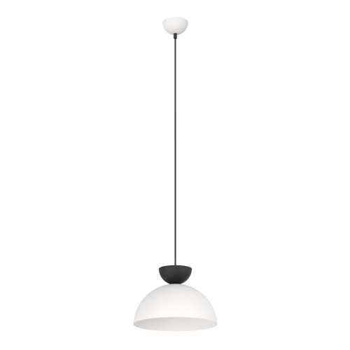 Модерен пендел със стилен дизайн от серията Lunaro, изработен от бял цвят метална основа и полусферична бяла метална шапка с черен декоративен елемент отгоре. Качествена висяща лампа, подходяща за интериорното осветление на вашия хол, трапезария, спалня, хотел и ресторант.