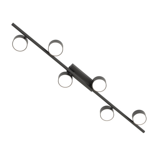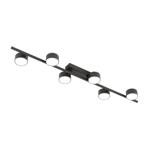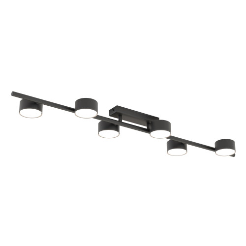 Стилен плафон с минималистичен дизайн от серията Bet, изработен от черен цвят метална основа с рамо и шест метални глави в черен цвят на цокъл GX53. Модерно предложение за интериорното осветление във вашия хол, трапезария, спалня, коридор, офис, хотел и заведение.