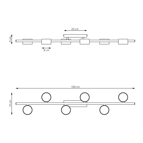 Размери: Височина: 90мм, Дължина: 1000мм, Широчина: 190мм, Диаметър на главите: 80мм