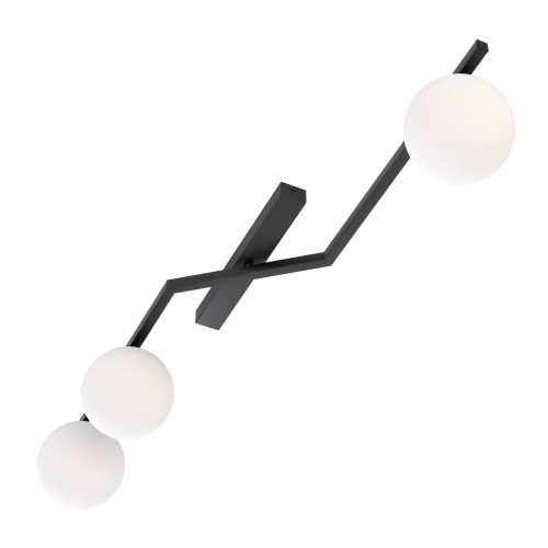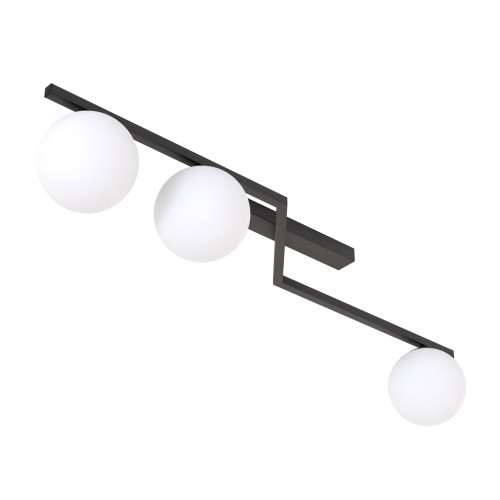 Стилен плафон с минималистичен дизайн от серията Naton, изработен от черен цвят правоъгълна метална основа с рамо и три цвят опал стъклени чашки в сферична форма. Модерно предложение за интериорното осветление във вашия хол, трапезария, спалня, коридор, хотел и заведение.