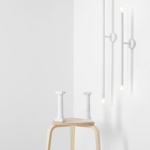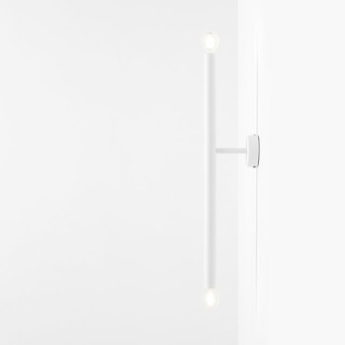 Original wall lamp with a modern design from the series Tubo, made of a white matt colour round metal base with an arm and a cylindrical metal body on an E14 socket. Stylish lamp, suitable for attractive and quality lighting of your living room, dining room, bedroom, hallway, hotel and restaurant.