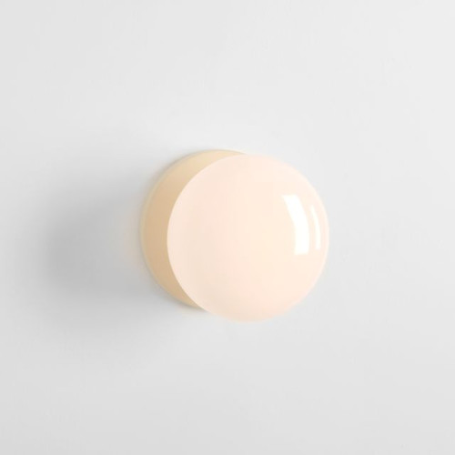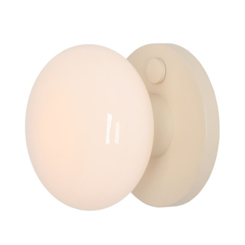 Stylish wall lamp with a minimalist design from the series Flo, made of a cream colour round metal base and opal glass shade on an E14 socket. An original solution for comfortable and modern lighting in your living room, dining room, bedroom, hotel and restaurant.