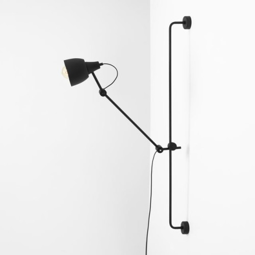 Functional wall lamp in an industrial style from the series Dron, made of a black matt colour metal base with adjustable height and a long movable arm with a metal shade on an E27 socket. Modern lamp with a built-in switch: ON/OFF, suitable for comfortable and stylish lighting of your living room, dining room, bedroom, hotel and restaurant.