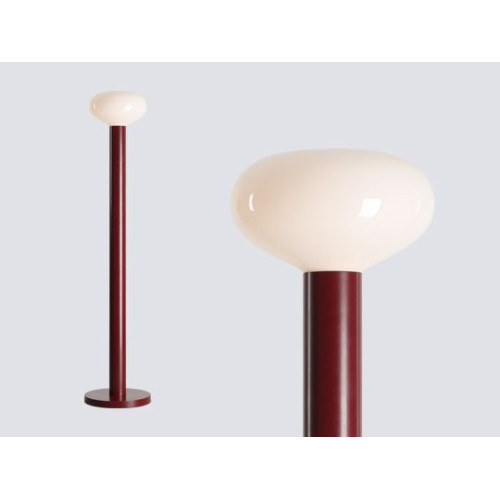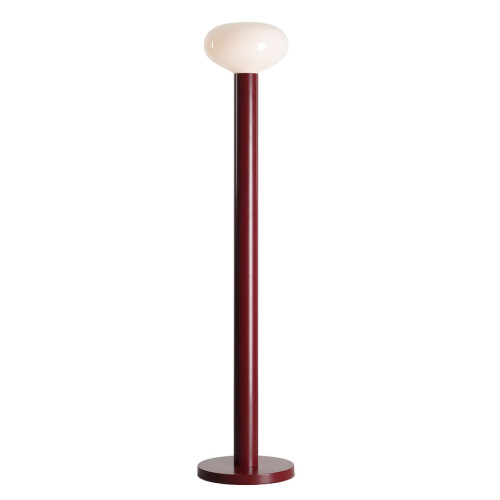 Stylish floor lamp with a minimalist design from the series Flo, made of a red colour metal body and opal glass shade on an E14 socket. An original solution for comfortable and modern lighting in your living room, dining room, bedroom, hotel and restaurant.