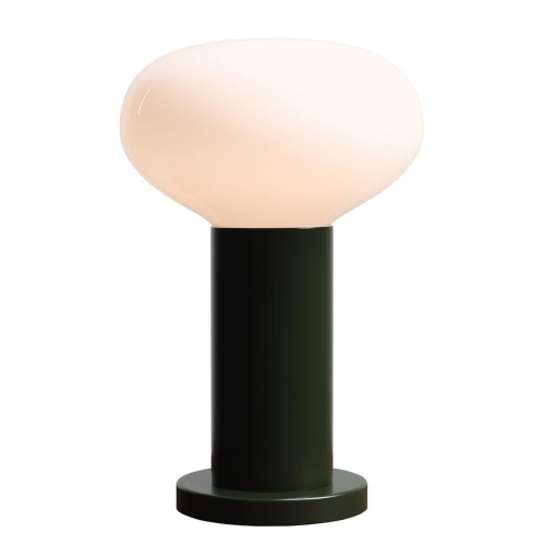 Stylish table lamp with a minimalist design from the series Flo, made of a dark green colour metal b..