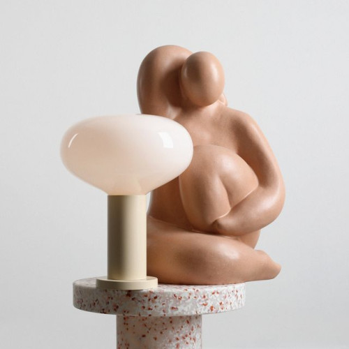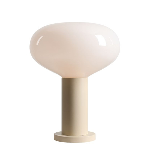 Stylish table lamp with a minimalist design from the series Flo, made of a cream colour metal body and opal glass shade on an E14 socket. An original solution for comfortable and modern lighting in your living room, dining room, bedroom, hotel and restaurant.