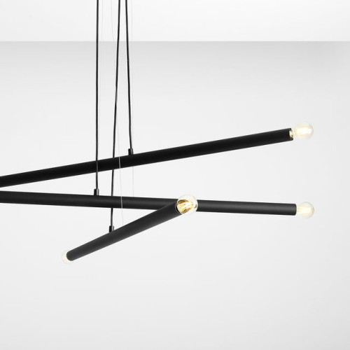 Original pendant lamp with a modern design from the series Tubo, made of a black matt colour metal base and three hanging cylindrical metal bodies on an E14 socket. Stylish lamp, suitable for attractive and high-quality lighting of your living room, dining room, bedroom, hotel and restaurant.