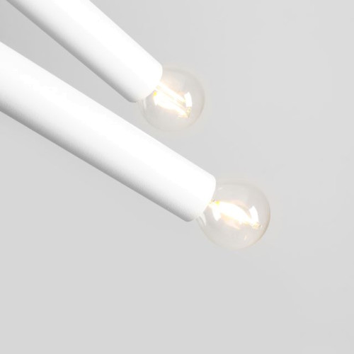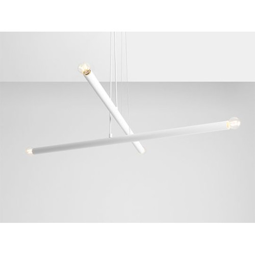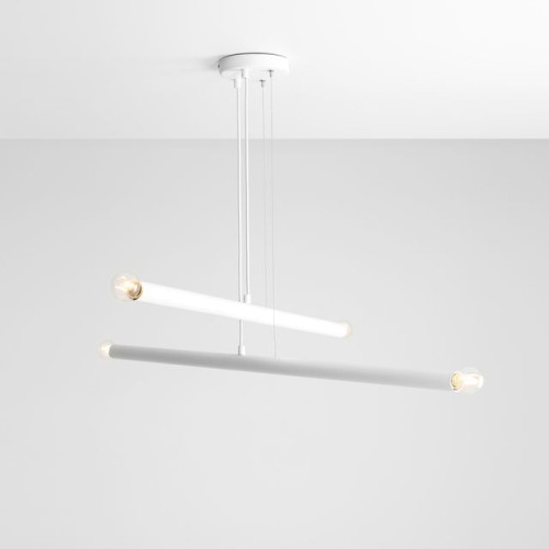 Original pendant lamp with a modern design from the series Tubo, made of a white matt colour metal base and two hanging cylindrical metal bodies on an E14 socket. Stylish lamp, suitable for attractive and high-quality lighting of your living room, dining room, bedroom, hotel and restaurant.