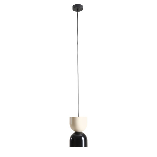 Stylish pendant lamp with an original design from the series Lui, made of a metal base and a hanging body, consisting of two identically sized metal shades in cream and black colour, which can be installed in a different configuration on an E27 socket. Modern lamp, suitable for stylish and comfortable lighting of your living room, dining room, bedroom and restaurant.