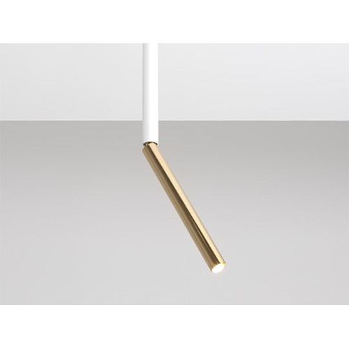 Modern spot lamp with a minimalist design from the series Stick, made of a white colour cylindrical metal body with adjustable head in gold colour on a G9 socket. Functional solution for innovative and comfortable lighting in your living room, dining room, bedroom, hallway, office, hotel and restaurant.