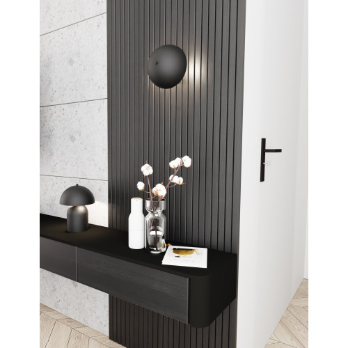 Modern wall lamp with a stylish design from the series Mush, made of a black colour metal base and a dome-shaped metal shade with indirect light diffusion on a G9 socket. A lamp that combines retro style with modern minimalism, suitable for the interior lighting of your living room, dining room, bedroom, hallway, hotel or restaurant.
