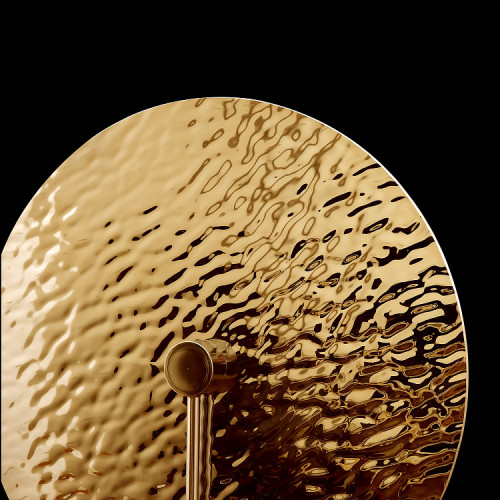 Original wall lamp with modern design from the series Mare, made of colour brass metal base and decorative round glass diffuser with mirror coating and unique texture. Attractive design solution for the interior lighting of your stylish living room, dining room, bedroom, hotel or restaurant.
