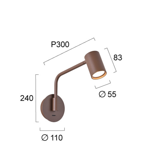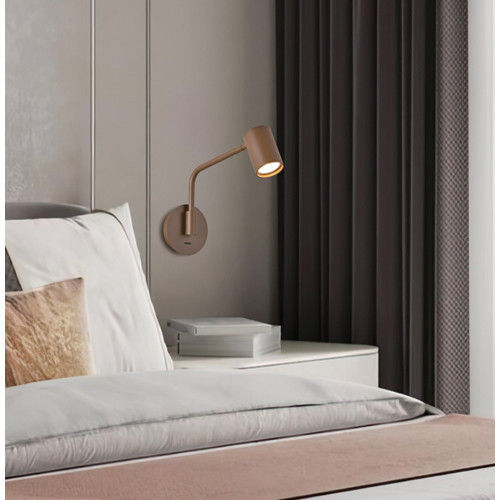 Modern wall lamp with a functional design from the series Vilma, made of coffee colour metal base with arm and adjustable metal head in a cylindrical shape on a GU10 socket. An original offer for comfortable lighting in your living room, bedroom, office, hotel and restaurant.