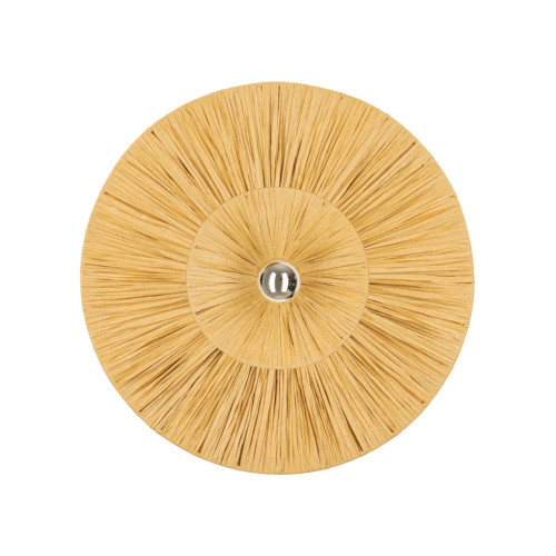 An attractive wall lamp in Mediterranean style, made of a metal base and a decorative round shade made of natural rattan. Modern lamp suitable for the original and cozy lighting of your living room, dining room, bedroom, hallway, hotel and restaurant.