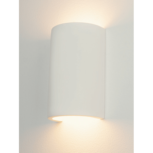 Elegant wall lamp with a clean design, made of white colour curved gypsum body on a G9 socket. Modern lighting solution for your living room, bedroom, corridor, office, hotel or restaurant.