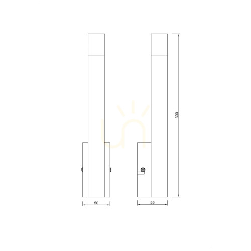 Dimensions: Height: 300mm, Width: 50mm, Distance from the wall: 55mm
