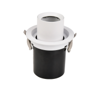 Recessed downlight lamp, made of white colour round metal body with deep inside head with frost..
