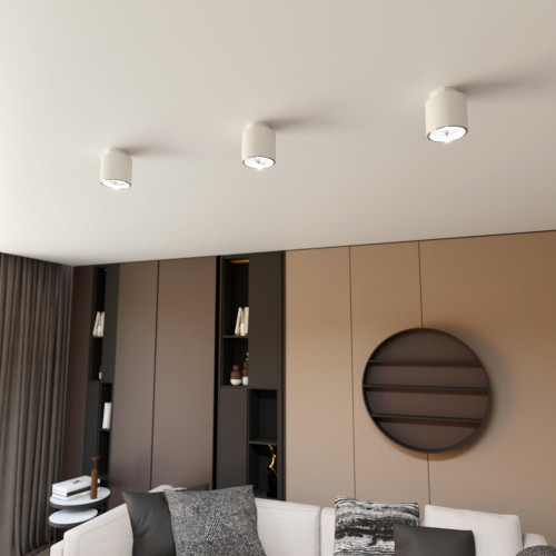 Modern surface mounting lamp with a minimalist design from the series Nano, made of a white colour cylindrical metal body on a GU10 AR111 socket. Stylish proposal for the interior lighting of your living room, dining room, bedroom, hallway, office, hotel and restaurant.