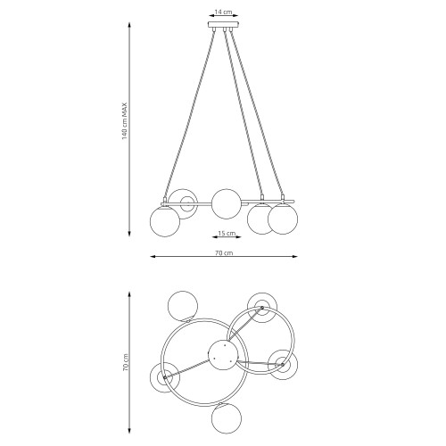 Dimensions: Height: 1400mm, Length: 700mm, Width: 700mm, Diameter of the shades: 150mm