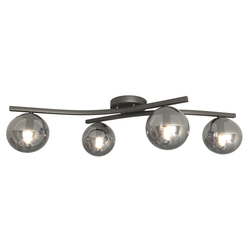 Elegant ceiling lamp with a minimalist design from the series Opus, made of a black colour metal base and arms with four spherical glass shades in graphite colour. A great idea for interior lighting in your living room, dining room, bedroom, hallway, hotel and restaurant.